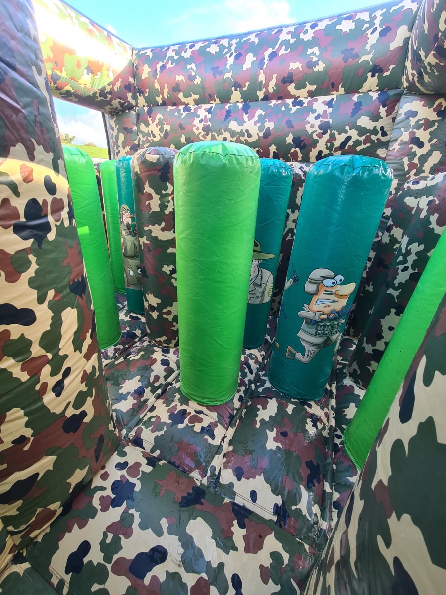 This Brand New Military Assault Obstacle Course is a two lane climbing obstacle where you enter the unit at the back through a series of inflatable pillars into a tunnel following a climbing wall, through the tunnels and then faced with a 10ft high climbing wall up to the top and then slide down the slide. Fully camouflaged, this is hugely popular with older children. So get your game on, it won't disappoint. This obstacle course is perfect for birthday parties, communions, confirmations, sports days and much more!